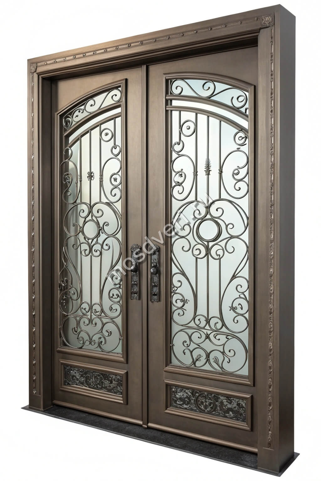 Двустворчатая красивая входная дверь с ковкой в частный дом КДД-004 — оформите заказ сегодня! Оставьте заявку, и узнайте точную цену в течение 15 минут. Выезд специалиста — когда вам удобно!