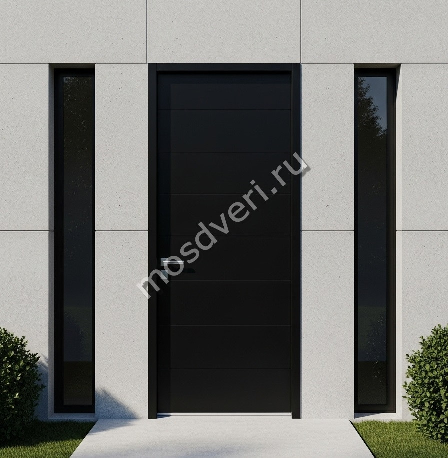 Высокая входная дверь в дом черная — совмещает современный дизайн и высокую надёжность.